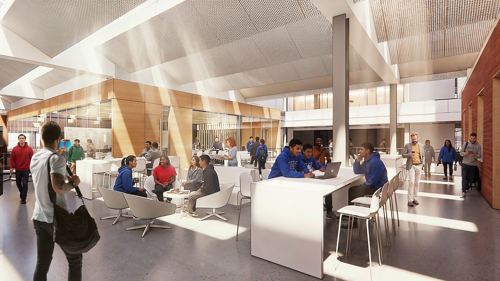The new atrium serves as the heart of Pratt Engineering, an active hub of learning and collaboration for year-round student activities, that unifies Harrington and Levine Science Research Center (LSRC) Quads with interior pathways, enabling interdisciplinary connections. The vision is focused on long-term flexibility and functionality, providing a modernized framework for classrooms and laboratories planned for adaptation allowing the School of Engineering to evolve the use of these spaces as needs change.