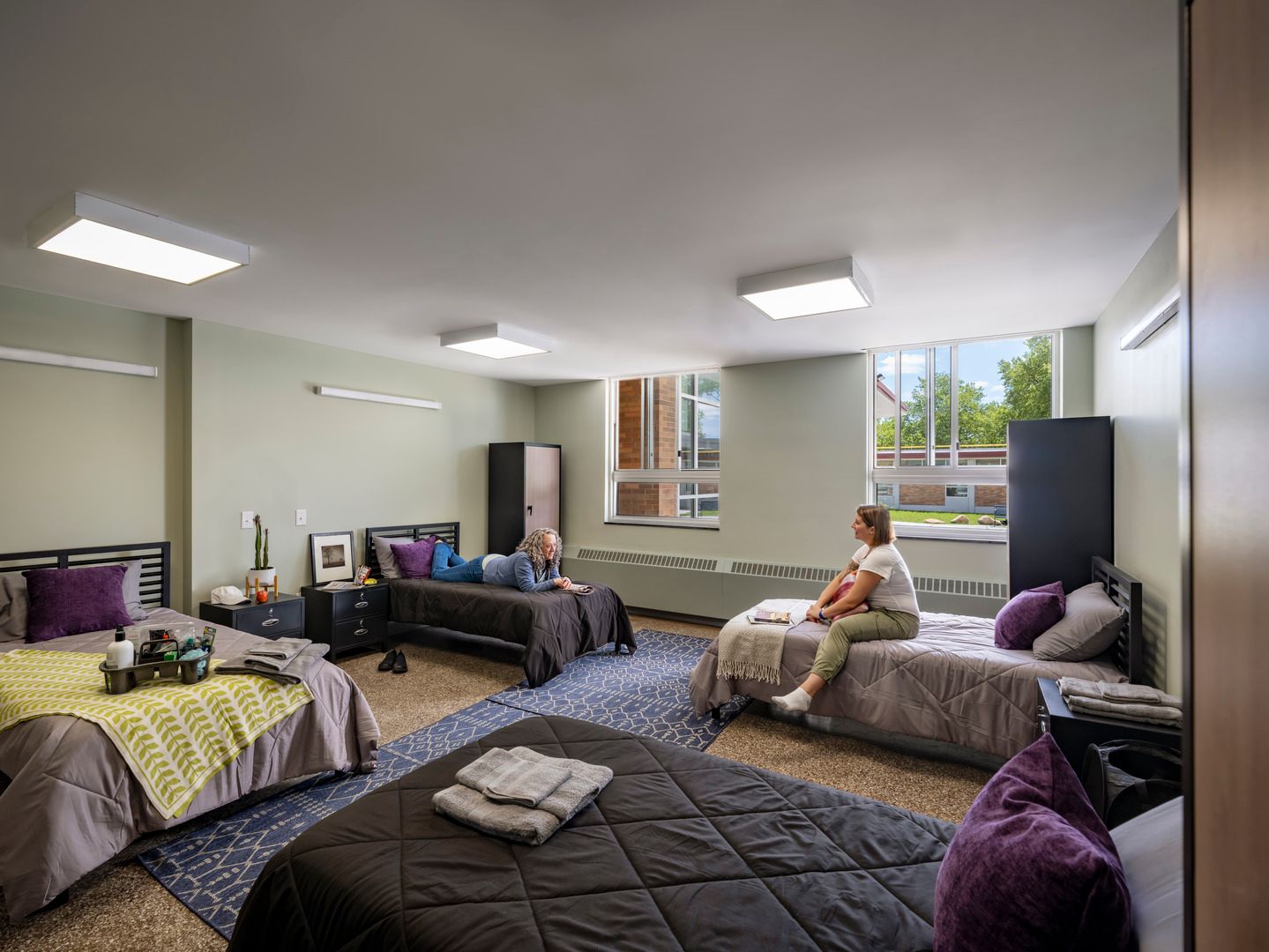 The site – 19 acres along the Delaware River in Northeast Philadelphia – has provided housing for underserved populations since the 1800s. Originally constructed in 1956 and expanded in 1964, the campus was an early example of biophilic design, with skylights in every cottage to bring in natural light and easily accessible outdoor areas. Ballinger’s renovation of four cottages and the central meeting house created 204 beds, jumpstarting the city’s ability to support people in recovery.