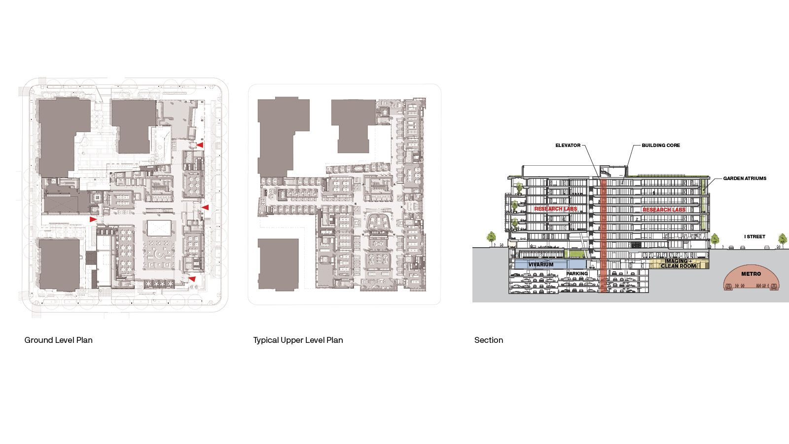 "The sheer scale of the project and amount of program required a design that intentionally creates varying scales of community. Multiple, interdisciplinary program neighborhoods include research, teaching, offices, workstations, interior garden atria, and social spaces. These neighborhoods stimulate local communities through providing a familiar, humanistic, scale of space and program for the occupants."