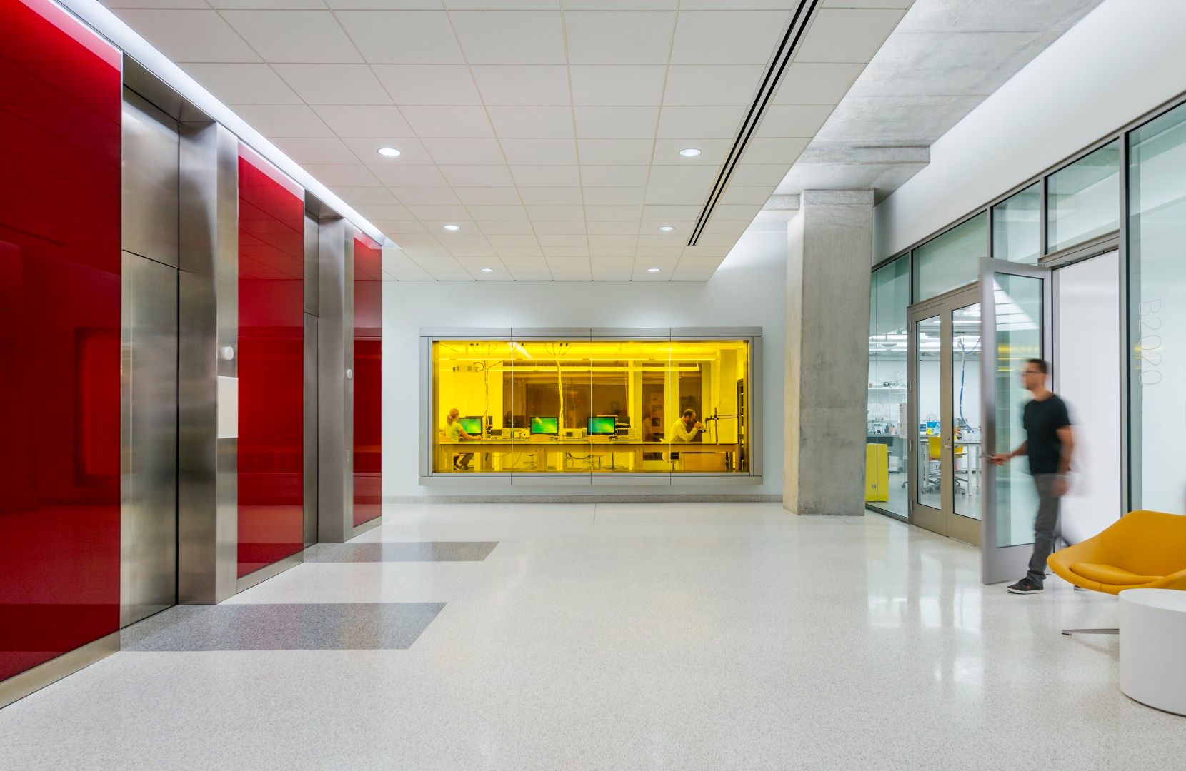 Ballinger responded to the building’s vast floorplate by making the space as see-through as possible. Light floods in through the glass façade of the exterior and the glass fronts on all offices and labs, giving occupants access to natural light and creating for them an environment that is legible, navigable, and vibrant.