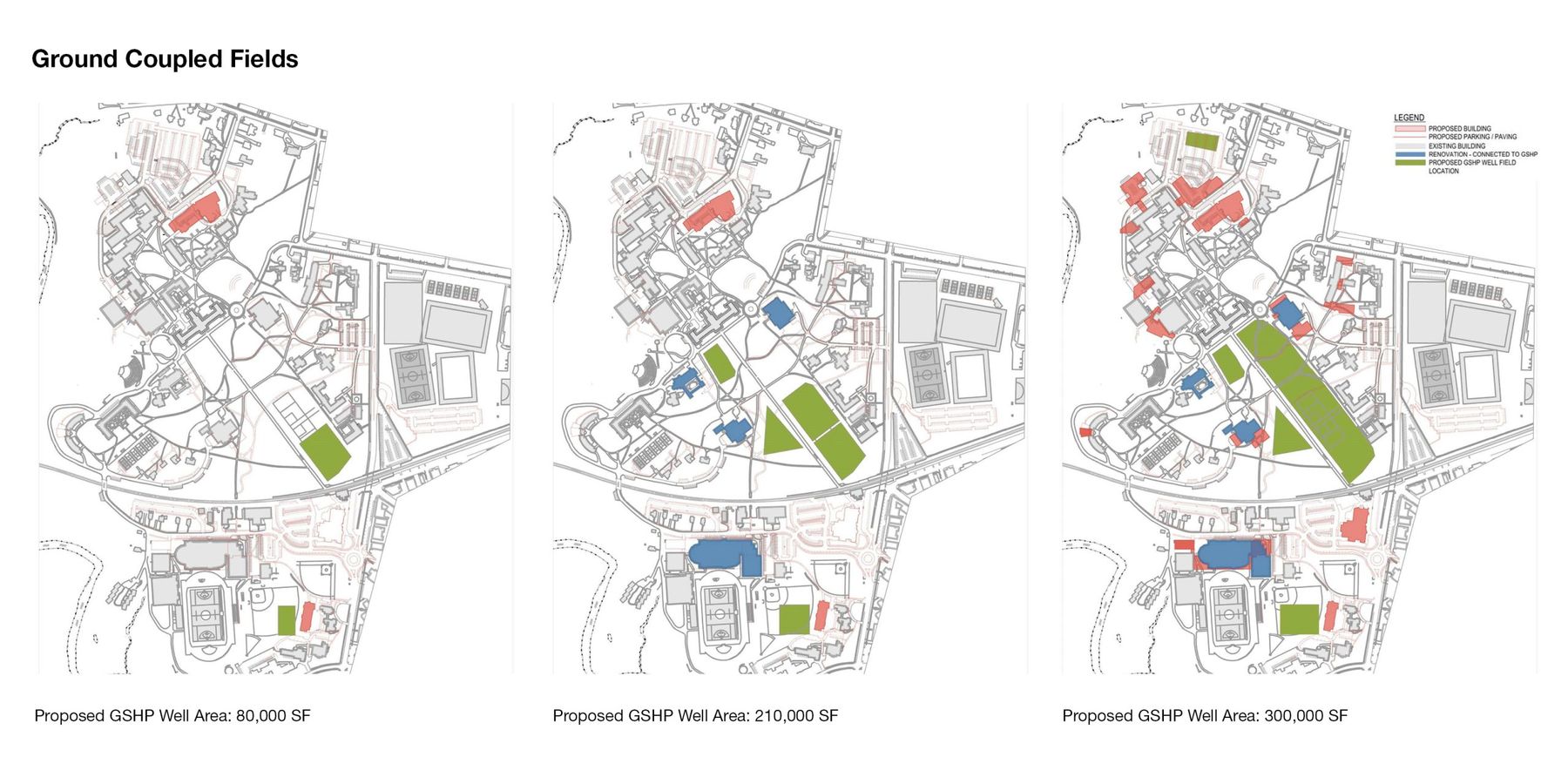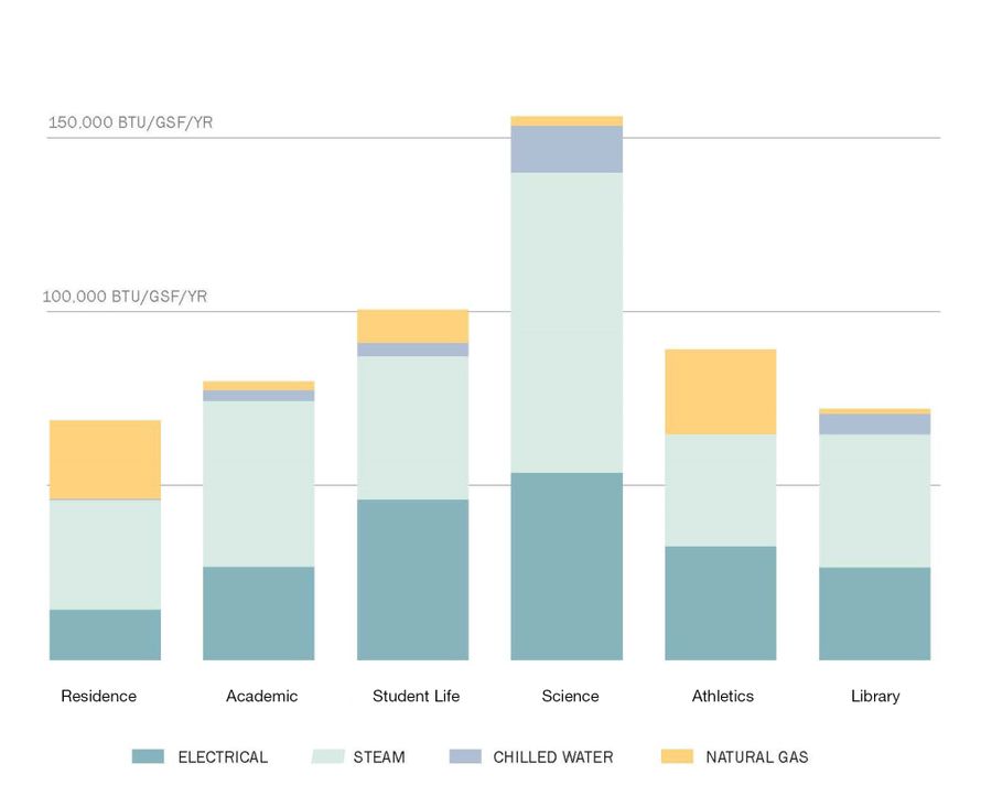 Ballinger surveyed campus buildings and gathered utility data on the operation and efficiencies of existing steam and chilled water plants. Information on 61 buildings, comprising over a million square feet, was used to build a campus energy model to test efficiency measures and evaluate scenarios. The team analyzed the impact of new high-performance buildings and high-performance systems upgrades of existing buildings, as well as a variety of central utility strategies.