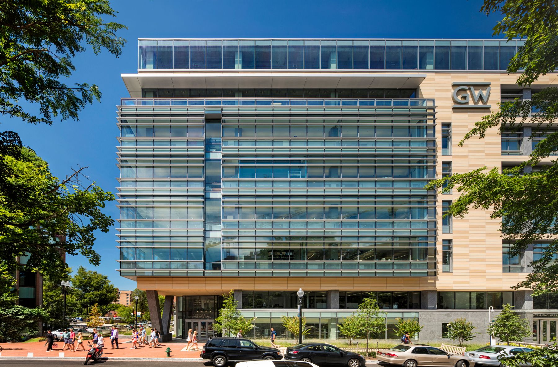 The scale of GW’s first major new laboratory building in 50 years was, at first glance, daunting on two levels: the size of the building – at 750,000 GSF it would span a city block – and the number of academic units it would house – nine in all. The challenges were daunting, too. The big building needed to feel small to its occupants, give them a sense of community, and give their disciplines a higher profile, on and off campus. The building had to put GW’s science and engineering on the map.